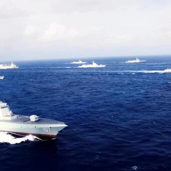 目前美日菲等七国正在南海进行“肩并肩”军演,此次解放军出动14艘军舰可谓是针锋相对了。